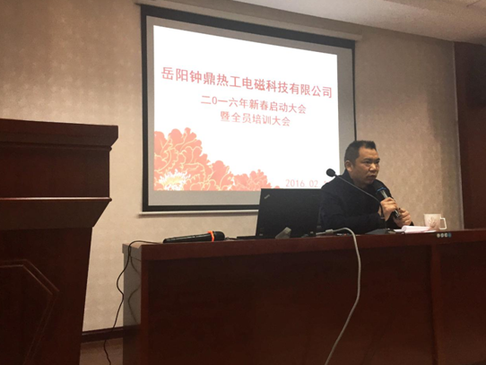 2016年2月15日正值大年初八,上午8時(shí)18分,清脆的鞭炮聲在鐘鼎熱工廠區(qū)響起,全體員工迎來了猴年的第一個(gè)工作日,公司為每位員工派發(fā)了開工大吉的紅包。9時(shí)整,2016年新春啟動(dòng)大會(huì)暨全員培訓(xùn)大會(huì)準(zhǔn)時(shí)開始,會(huì)上董事長游述懷、常務(wù)副總屈志勇發(fā)表了熱情洋溢的講話。2016年公司將以市場為導(dǎo)向,創(chuàng)新求變,苦煉內(nèi)功,主動(dòng)適應(yīng)新常態(tài)、新發(fā)展,在新的一年中實(shí)現(xiàn)新夢(mèng)想、新跨越。